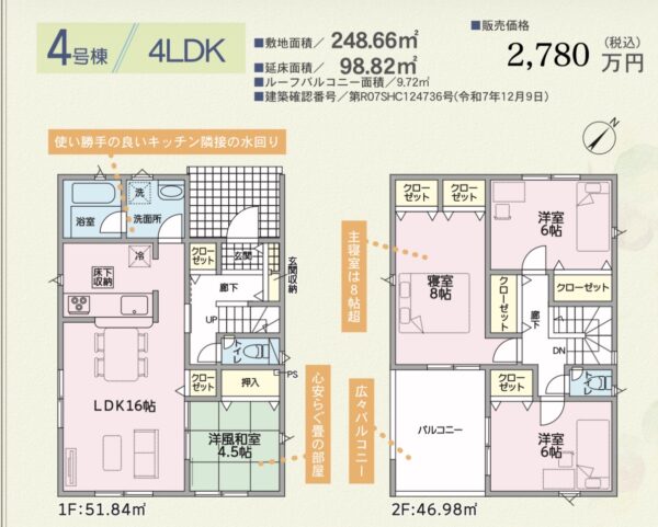 富山市下堀第1-4号棟☆4LDK+ルーフバルコニーつき新築住宅の詳細情報