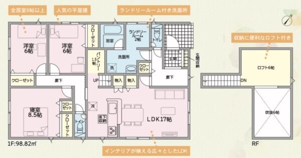 富山市秋吉新町第1-1号棟☆3LDK+ロフト6帖つき平屋新築住宅